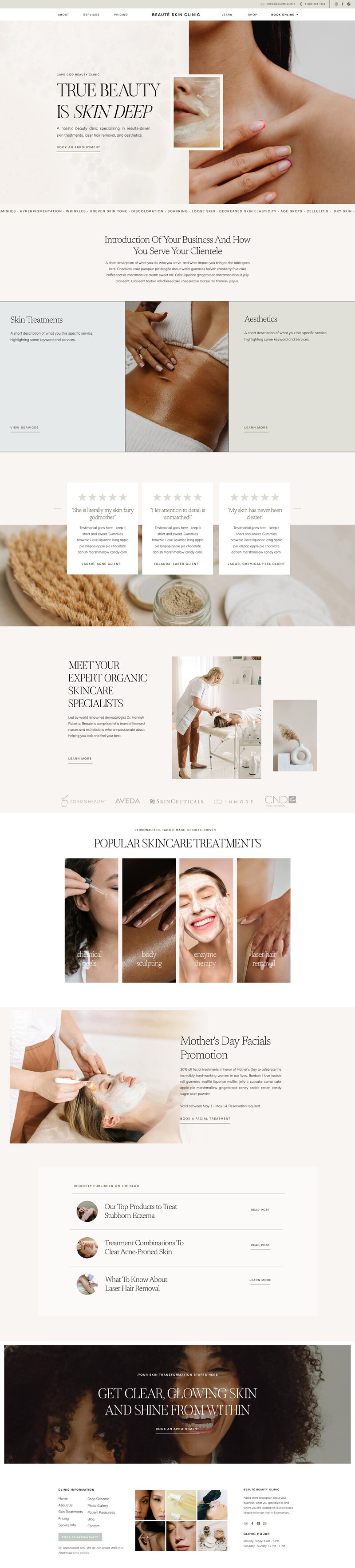 Designed with simplicity and minimalism in mind, Beauté is the perfect online home for aestheticians, salon owners, beauty professionals, makeup artists, hair stylists, and service-based businesses with small product shops.