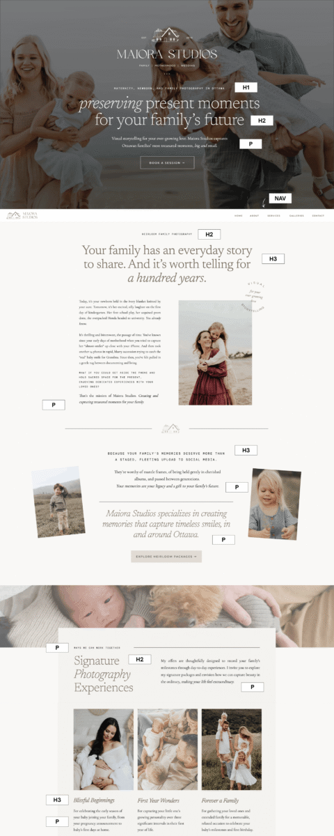 This is why heading tags matter so much on a Showit site. They create the structure that helps search engines, accessibility tools, and real people understand what your content is about and how everything fits together.
